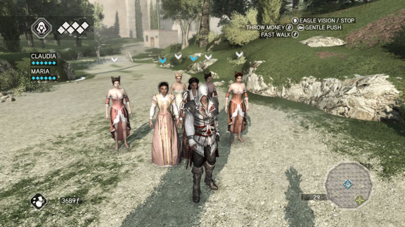 Let’s talk about dramatic changes. Now you need MONEY. First of all because your weapons get damaged and you will need the money to get them repaired at the local blacksmith. Second is because you may want to buy new weapons and armor, one cannot survive in AC2 without a decent set. Third is to heal yourself, you now get potions to heal yourself with. And last, and something more interesting (spoiler) since you need to upgrade the Villa your uncle Mario runs. The Villa can generate income for you over time, but you will have to invest some money on it for it to grow. Investments in an action adventure, I love it! I myself invested heavily to acquire a whorehouse for the Villa, sue me, a town needs its prostis. I mean where would the politicians go if there’s no whorehouse, right?