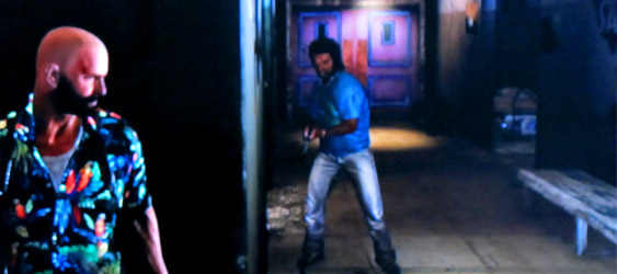 Max Payne looks good. Sure you notice the aliasing in some parts of the game but these don’t distract you too much from the well built levels located all over Sao Paolo Brazil. From office buildings to the favela, locations are incredibly detailed and feel very real. If you think it can’t look any better, wait ’til the firefight starts. When the bullets start flying and you slow time for your little ballet of death, Max Payne 3 looks even more amazing. You’ll see bullets flying through the air and hit computer monitors, stacks of paper, parts of walls falling off, tables getting ripped to shreds. Ahhh.. adrenaline, you come and give me joy. What we don’t like about the presentation though is the transitions. They change the color palette and stretch the screen out to double the image, much like when you watch a 3d film without the glasses. If you have a history of epilepsy, consult your doctor before playing this title. Also the random words being flashed across the screen as the narrative plays out. Weird. Just plain weird.